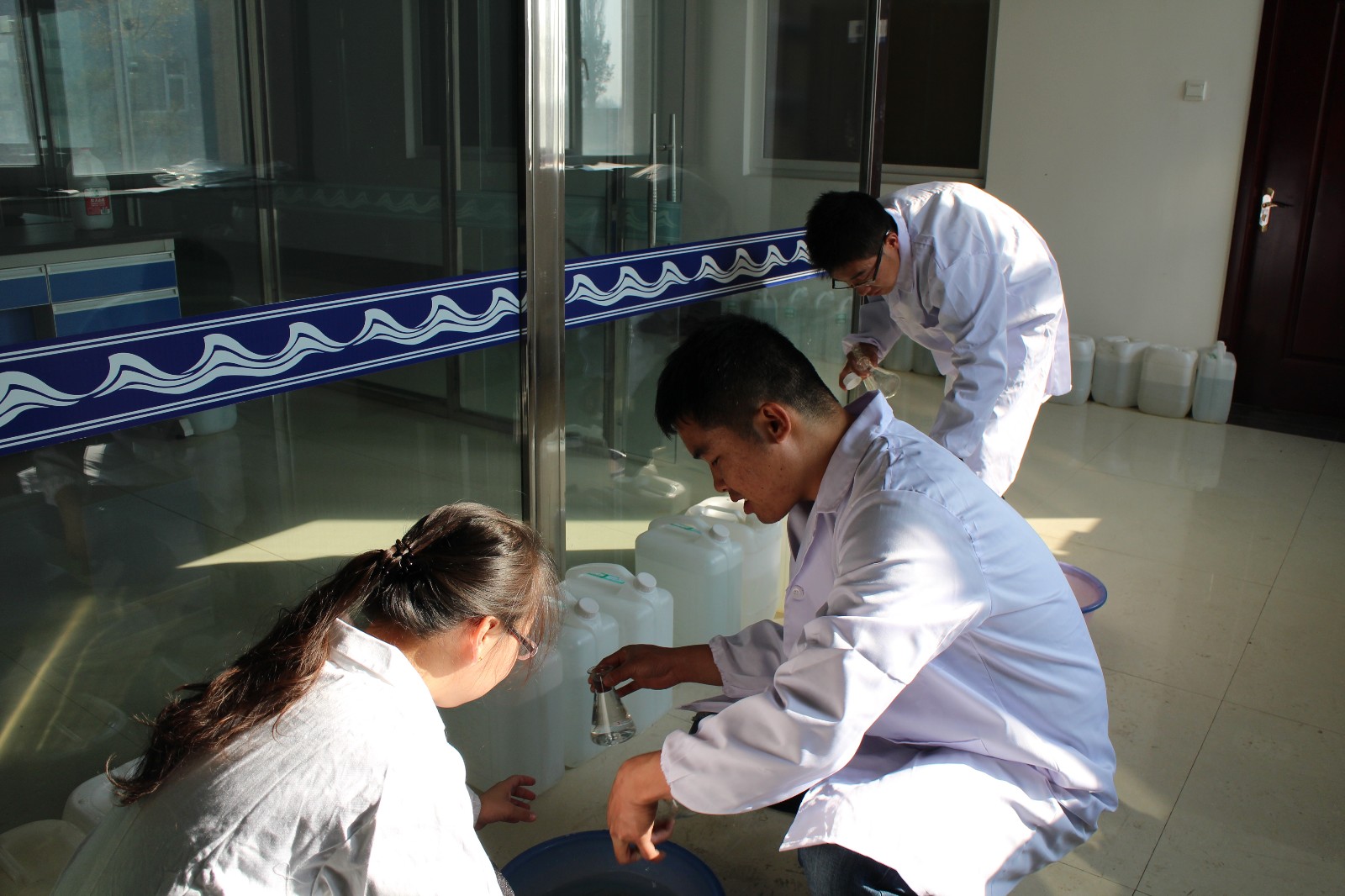 實驗人員采集水樣準(zhǔn)備進(jìn)行檢測