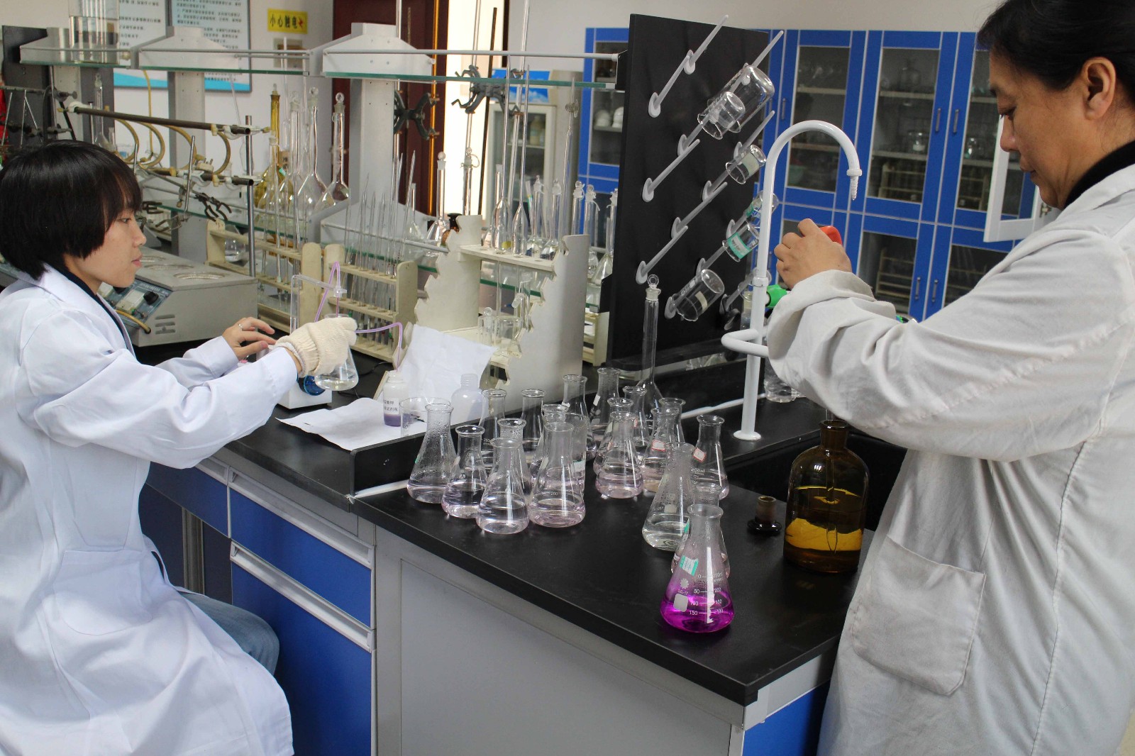檢測中心王世平、賈麗萍進(jìn)行培養(yǎng)皿的清洗工作