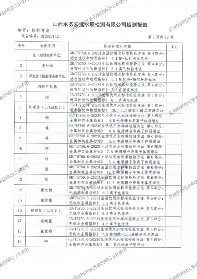 水質(zhì)公告