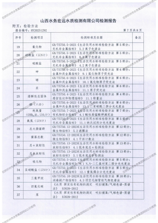 忻州城區(qū)公共供水水源水、出廠水、管網(wǎng)水、管網(wǎng)末梢水2025年10月份水質(zhì)信息公示