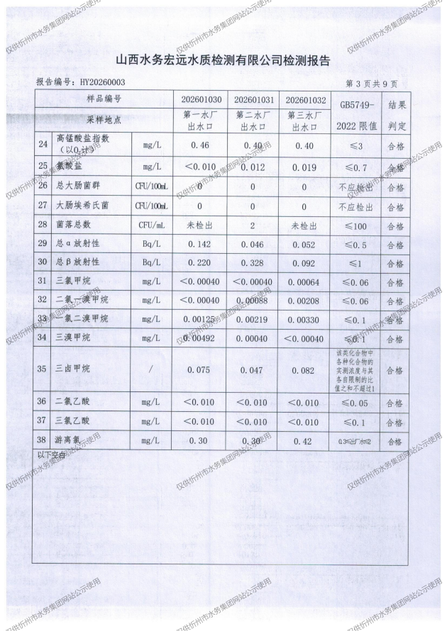 忻州城區(qū)公共供水水源水、出廠水、管網(wǎng)水、管網(wǎng)末梢水2026年1月份水質(zhì)信息公示