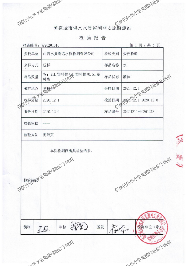 2020年忻州城區(qū)公共供水南水廠、三水廠、云中水廠出廠水106項水質(zhì)全分析
